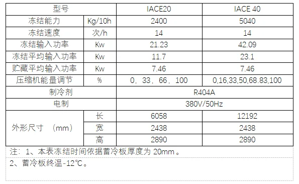 蓄冷劑干式凍結裝備參數(PLUS型)