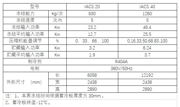 蓄冷劑干式快速凍結裝備與貯藏一體化裝備參數(PLUS型)